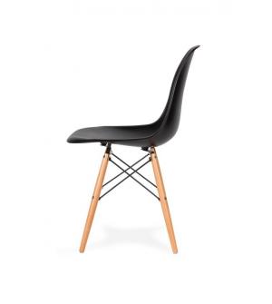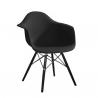 Fotel DAW. Siedzisko w całości wykonane jest z polipropylenu w czarnym kolorze z matowym odcieniem. Łączenia podstawy zrobione są ze stali w kolorze czarnym. Nogi z drewna bukowego malowanego na czarno z metalowym prętem wewnątrz, który dodatkowo wzmacnia konstrukcję. Daw to wygodny fotel, który dzięki zastosowaniu tworzywa sztucznego jest łatwy w...