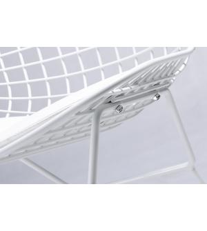 Krzesło NET SOFT w całości wykonane jest z metalu w kolorze białym. Na siedzisku znajduje się poduszka, tapicerowana ekoskórą w kolorze białym.Wymiary paczki: 53 cm x 51 cm x 56 cm Sposób wysyłki: Paczka Produkt do samodzielnego montażu: Tak