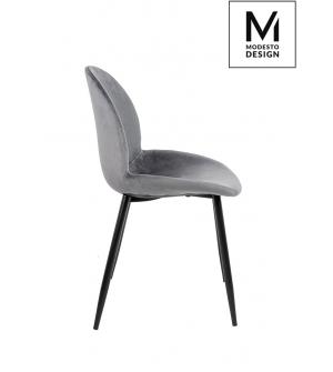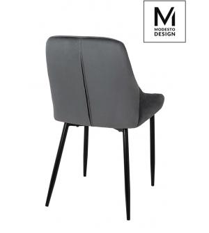 Krzesło CLOVER w kolorze ciemny szary od MODESTO DESIGN. Wyprofilowane siedzisko i oparcie zapewniają wygodę użytkowania. Na siedzisku dodatkowo umieszczono poduchę, dla poprawy komfortu. Całość tapicerowana jest miękkim i przyjemnym w dotyku welurem. Stabilność i wytrzymałość zapewnia konstrukcja z metalu w kolorze czarnym, oparta na czterech nogach....