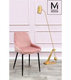 Krzesło CLOVER w kolorze pudrowy róż od MODESTO DESIGN. Wyprofilowane siedzisko i oparcie zapewniają wygodę użytkowania. Na siedzisku dodatkowo umieszczono poduchę, dla poprawy komfortu. Całość tapicerowana jest miękkim i przyjemnym w dotyku welurem. Stabilność i wytrzymałość zapewnia konstrukcja z metalu w kolorze czarnym, oparta na czterech nogach....