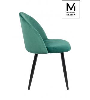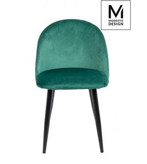 Krzesło NICOLE marki MODESTO DESIGN. Tapicerowane jest miękkim i przyjemnym w dotyku welurem w kolorze zielonym. Stabilna podstawa została wykonana z metalu w kolorze czarnym matowym. Nicole to połączenie modnej tkaniny i klasycznej czerni.Waga netto 1 szt.: 6 kg. Waga z opakowaniem: 6,4 kg. Wymiary opakowania: 60 cm x 55 cm x 51 cm. Sposób wysyłki:...