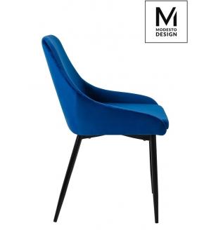 Krzesło CLOVER w kolorze ciemny niebieski od MODESTO DESIGN. Wyprofilowane siedzisko i oparcie zapewniają wygodę użytkowania. Na siedzisku dodatkowo umieszczono poduchę, dla poprawy komfortu. Całość tapicerowana jest miękkim i przyjemnym w dotyku welurem. Stabilność i wytrzymałość zapewnia konstrukcja z metalu w kolorze czarnym, oparta na czterech...