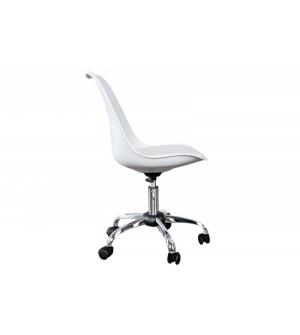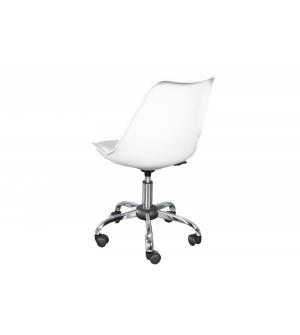 Krzesło obrotowe TULIP. Korpus wykonany jest z tworzywa ABS w kolorze białym błyszczącym. Poduszka w kolorze czarnym z suwakiem ułatwiającym czyszczenie. Podstawa wykonana z metalu w kolorze białym błyszczącym.Waga netto 1 szt.: 8 kg Waga opakowania: 9 kg Wymiary opakowania: 50x52x46,5 cm Sposób wysyłki: Paczka Produkt do samodzielnego montażu: Tak
