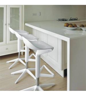Krzesło barowe SNAP BAR regulowane białe. Hoker jest świetnym dodatkiem do kuchni, jeżeli chcemy sprawić, aby wyglądem i klimatem przypominała bar. Siedzisko zostało wykonane z tworzywa sztucznego, a postawa z metalu w kolorze białym. Snap ma regulowaną wysokość, podnóżek i obrotowe siedzisko, co zwiększa komfort użytkowania. Prosty i ponadczasowy design...