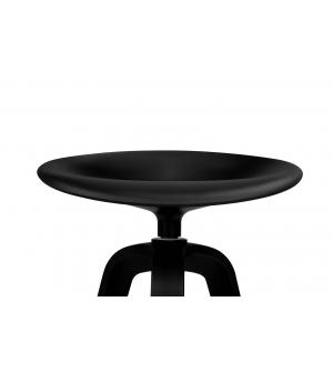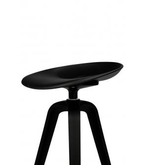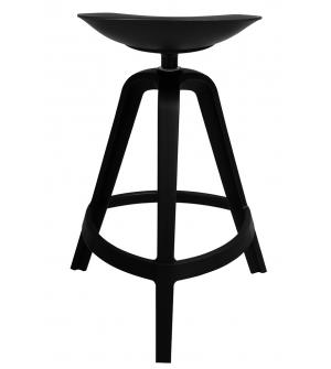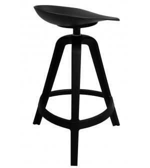 Hoker obrotowy MIRA w całości wykonany został z wysokiej jakości polipropylenu w kolorze czarnym. Mimo iż nie posiada oparcia, jego obrotowe siedzisko zostało wyprofilowane w sposób zapewniający komfort siedzenia, natomiast 3 grube nogi u podstawy nadają mu stabilność. Dodatkowo hoker wyposażono w funkcjonalny podnóżek pozwalający wygodnie oprzeć stopy....