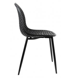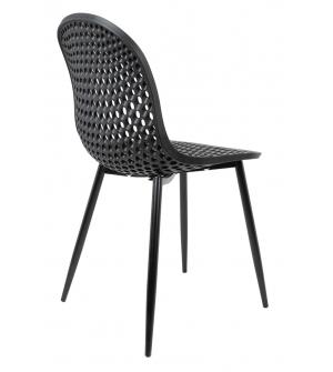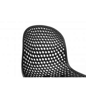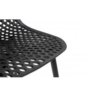 Krzesło CHIPS czarne. Wyprofilowane siedzisko z ażurowym motywem ozdobnym zostało wykonane z polipropylenu w kolorze czarnym matowym. Metalowa podstawa lakierowana na kolor czarny dopełnia całość, tworząc nowoczesny i uniwersalny styl.Wysokość oparcia: 42 cm Szerokość oparcia: 39 cm Szerokość siedziska: 45 cm Głębokość siedziska: 38,5 cm Wysokość nóg:...