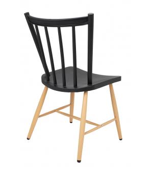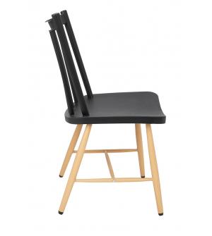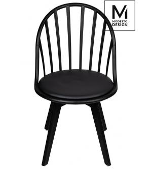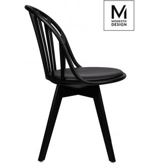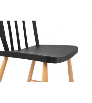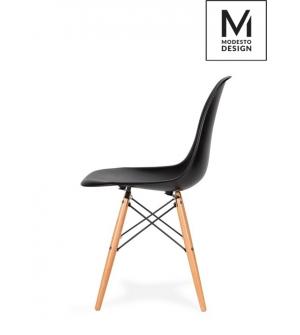 Krzesło DSW marki MODESTO DESIGN. Siedzisko i oparcie wykonane z tworzywa sztucznego w kolorze czarnym. Nogi drewno bukowe, łączenia stal lakierowana na czarno. Waga netto 1 szt.: 3.50 kg Waga opakowania: 4 kg Sposób wysyłki: Paczka Produkt do samodzielnego montażu: Tak Wymiary paczki: 58 cm x 56 cm x 52 cm