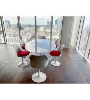 Fotel obrotowy TULIP. Korpus wykonany jest z tworzywa ABS w kolorze białym błyszczącym. Poduszka w kolorze czerwonym z suwakiem ułatwiającym czyszczenie. Podstawa wykonana z metalu w kolorze białym błyszczącym.Waga netto 1 szt.: 8 kg Waga opakowania: 9 kg Wymiary opakowania: 67x57x52 cm Sposób wysyłki: Paczka Produkt do samodzielnego montażu: Tak