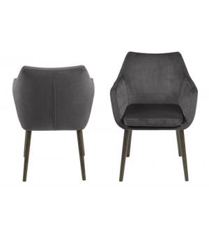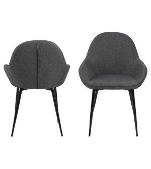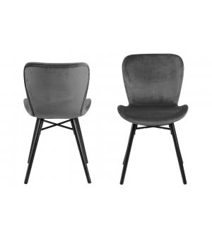 Krzesło Batilda to doskonałe rozwiązanie do salonu czy jadalni. Solidna podstawa wykonana z drewna kauczukowego pomalowanego na czarno, wzmocniona metalowym krzyżakiem zapewni stabilność podczas użytkowania. Siedzisko z tkaniny welurowej jest bardzo stylowe. Tkanina użyta do tapicerowania siedziska to VIC dark grey 28.Sposób wysyłki: Paczka.