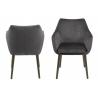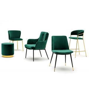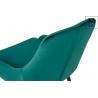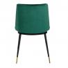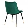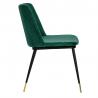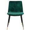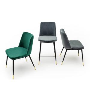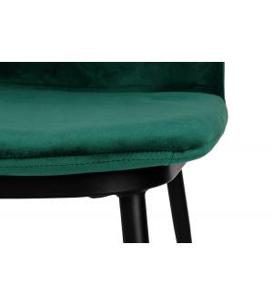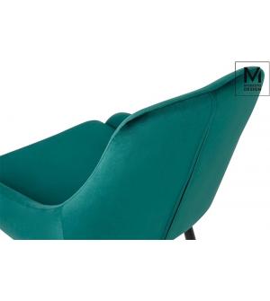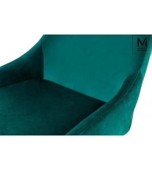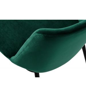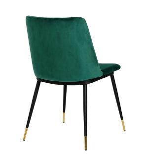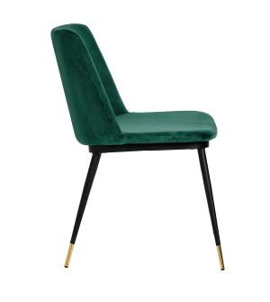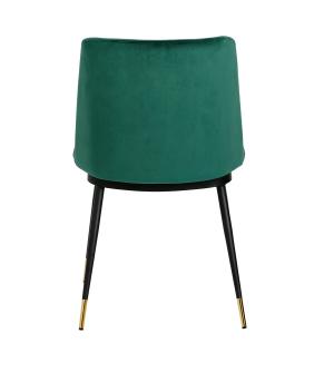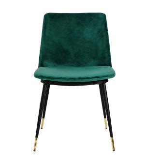 Krzesło Diego w kolorze zielonym. Siedzisko i oparcie tapicerowane miękkim i przyjemnym w dotyku welurem. Konstrukcja z metalu w kolorze czarnym z satynowym wykończeniem. Ciekawym elementem dekoracyjnym są złote zakończenia nóg. Krzesło doskonale odnajdzie się w jadalni, gabinecie oraz pokoju dziennym.Wysokość oparcia: 37,5 cm Głębokość siedziska; 46...