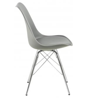 Fotel DAR SILVER. Siedzisko w całości wykonane jest z polipropylenu w jasnoszarym kolorze z matowym odcieniem. Wytrzymała podstawa zrobiona jest z chromowanego metalu. Dar Silver to wygodny fotel, który dzięki zastosowaniu tworzywa sztucznego jest łatwy w czyszczeniu. Doskonale sprawdzi się w jadalni, salonie lub pokoju dziennym.Wytrzymałość: 120 kg...