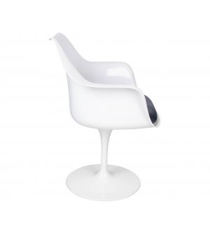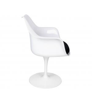 Fotel obrotowy TULIP. Korpus wykonany jest z tworzywa ABS w kolorze białym błyszczącym. Poduszka w kolorze czarnym z suwakiem ułatwiającym czyszczenie. Podstawa wykonana z metalu w kolorze białym błyszczącym.Waga netto 1 szt.: 8 kg Waga opakowania: 9 kg Wymiary opakowania: 67x57x52 cm Sposób wysyłki: Paczka Produkt do samodzielnego montażu: Tak