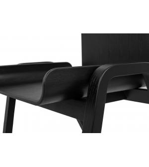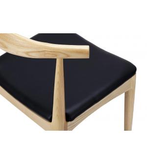 Siedzisko wykonane z ekoskóry w kolorze czarnym. Stelaż z litego drewna jesionowego.Wymiary paczki: 63 cm x 60 cm x 85 cm Sposób wysyłki: Paczka Produkt złożony: Tak
