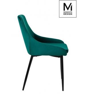 Krzesło CLOVER w kolorze zielonym od MODESTO DESIGN. Wyprofilowane siedzisko i oparcie zapewniają wygodę użytkowania. Na siedzisku dodatkowo umieszczono poduchę, dla poprawy komfortu. Całość tapicerowana jest miękkim i przyjemnym w dotyku welurem. Stabilność i wytrzymałość zapewnia konstrukcja z metalu w kolorze czarnym, oparta na czterech nogach. Krzesło...