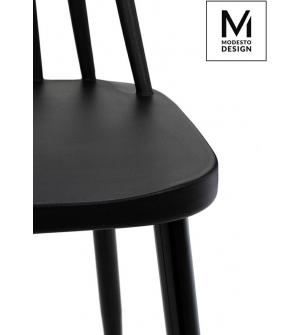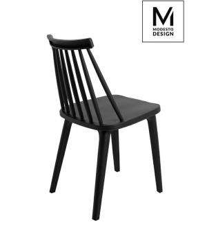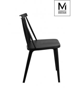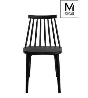 Krzesło SOHO marki MODESTO DESIGN. Całość wykonana z polipropylenu w kolorze czarnym matowym. Krzesło sprawdzi się zarówno w nowoczesnym salonie, na tarasie lub balkonie. Krzesła Soho można sztaplować.Waga netto 1 szt.: 4,45 kg Waga opakowania: 5 kg Wymiary paczki: 70 cm x 42 cm x 83 cm Sposób wysyłki: Paczka Produkt złożony: Tak