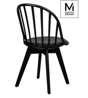 Krzesło ALBERT marki MODESTO DESIGN. Klasyczne krzesło w nowoczesnym wydaniu. Cala konstrukcja wykonana z polipropylenu w kolorze czarnym matowym. Na siedzisku znajduje się miękka poduszka, tapicerowana czarną ekoskórą. Doskonałe krzesło do jadalni lub salonu.Szerokość siedziska: 42 cm Głębokość siedziska: 42 cm Wysokość oparcia: 41 cm Szerokość...