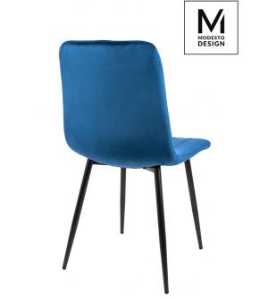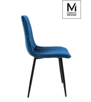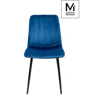 Krzesło LARA w kolorze ciemnym niebieskim od MODESTO DESIGN. Wyprofilowane oparcie i miękkie siedzisko tapicerowane tkaniną welurową. Podstawa w całości wykonana z metalu lakierowanego na kolor czarny. Prosta i funkcjonalna forma zapewnia komfortowe użytkowanie.Waga netto 1 szt.: 4,55 kg. Waga z opakowaniem: 10 kg. Wymiary opakowania: 65 cm x 56 cm x 46...