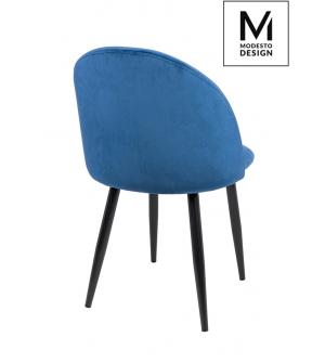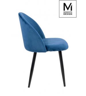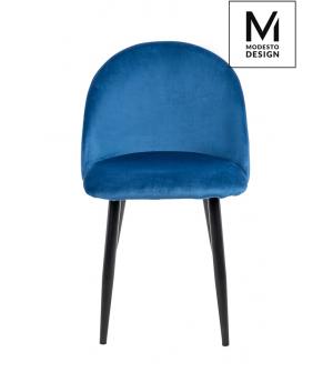 Krzesło NICOLE marki MODESTO DESIGN. Tapicerowane jest miękkim i przyjemnym w dotyku welurem w ciemnym niebieskim kolorze. Stabilna podstawa została wykonana z metalu w kolorze czarnym matowym. Nicole to połączenie modnej tkaniny i klasycznej czerni.Waga netto 1 szt.: 6 kg. Waga z opakowaniem: 6,4 kg. Wymiary opakowania: 60 cm x 55 cm x 51 cm. Sposób...