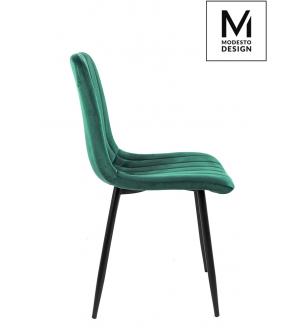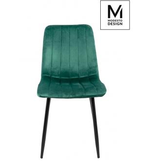 Krzesło LARA w kolorze zielonym od MODESTO DESIGN. Wyprofilowane oparcie i miękkie siedzisko tapicerowane tkaniną welurową. Podstawa w całości wykonana z metalu lakierowanego na kolor czarny. Prosta i funkcjonalna forma zapewnia komfortowe użytkowanie.Waga netto 1 szt.: 4,55 kg. Waga z opakowaniem: 10 kg. Wymiary opakowania: 65 cm x 56 cm x 46 cm....