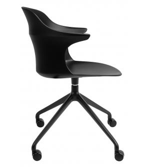 Krzesło biurowe obrotowe BRAZO to produkt, który swoją nietypową formą z pewnością trafi w niebanalne gusta. Profilowane siedzisko zostało wykonane z wytrzymałego polipropylenu w kolorze czarnym. Nietypowe załamanie na oparciu przy podłokietnikach dodaje charakteru. Podstawa z aluminium w kolorze czarnym, podkreśla solidność wykonania produktu, a cztery...