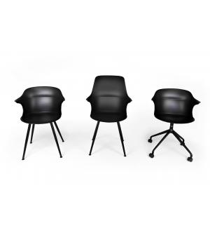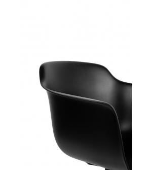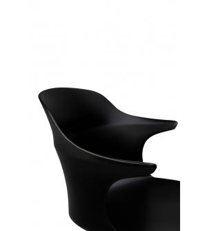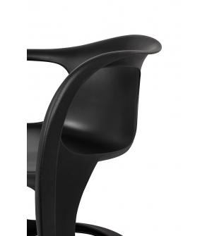 Krzesło BRAZO to produkt, który swoją nietypową formą z pewnością trafi w niebanalne gusta. Profilowane siedzisko zostało wykonane z wytrzymałego polipropylenu w kolorze czarnym. Nietypowe załamanie na oparciu przy podłokietnikach dodaje charakteru. Podstawa ze stali malowanej proszkowo na czarno podkreśla solidność wykonania produktu, a stopki chronią...