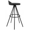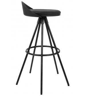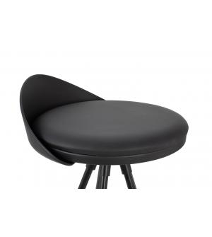 Krzesło barowe LANZA 76 czarne. Niskie oparcie i siedzisko z poduszką z ekoskóry idealnie komponują się z długimi, zgrabnymi nóżkami wykonanymi z metalu lakierowanego na kolor czarny. Okrągła obręcz na podstawie oprócz wizualnego aspektu spełnia funkcję praktycznego podnóżka, co ułatwia praktyczne użytkowanie. W ofercie dostępny jest również stolik barowy...