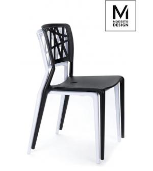 Krzesło ANDY marki MODESTO DESIGN. W całości wykonane jest z polipropylenu w czarnym, matowym kolorze. Wyprofilowane oparcie oraz siedzisko, zapewnią odpowiedni komfort.. Dzięki zastosowaniu wytrzymałego tworzywa, krzesło doskonale sprawdza się wewnątrz oraz na zewnątrz pomieszczeń.Waga netto 1 szt.: 4 kg Waga z opakowaniem: 5 kg Wymiary opakowania: 57...