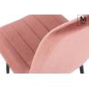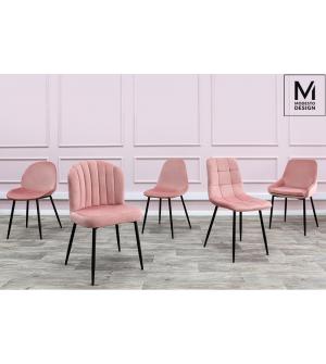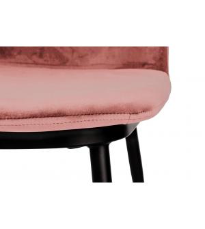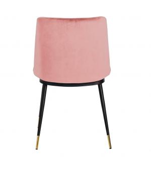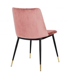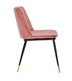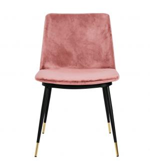 Krzesło Diego w różowym. Siedzisko i oparcie tapicerowane miękkim i przyjemnym w dotyku welurem. Konstrukcja z metalu w kolorze czarnym z satynowym wykończeniem. Ciekawym elementem dekoracyjnym są złote zakończenia nóg. Krzesło doskonale odnajdzie się w jadalni, gabinecie oraz pokoju dziennym.Wysokość oparcia: 37,5 cm Głębokość siedziska; 46 cm Waga...