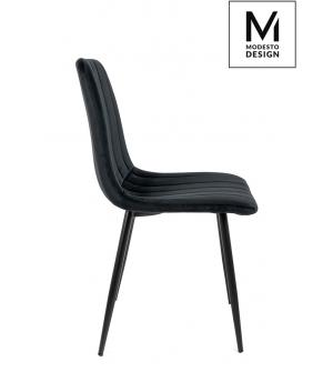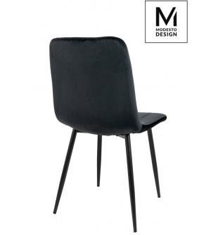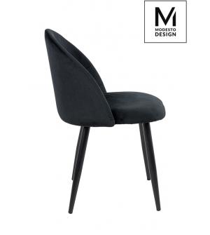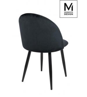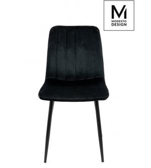 Krzesło NICOLE marki MODESTO DESIGN. Tapicerowane jest miękkim i przyjemnym w dotyku welurem w kolorze czarnym. Stabilna podstawa została wykonana z metalu w kolorze czarnym matowym. Nicole to połączenie modnej tkaniny i klasycznej czerni.Waga netto 1 szt.: 6 kg. Waga z opakowaniem: 6,4 kg. Wymiary opakowania: 60 cm x 55 cm x 51 cm. Sposób wysyłki:...