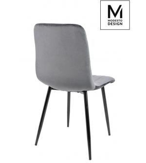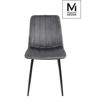 Krzesło LARA w kolorze szarym od MODESTO DESIGN. Wyprofilowane oparcie i miękkie siedzisko tapicerowane tkaniną welurową. Podstawa w całości wykonana z metalu lakierowanego na kolor czarny. Prosta i funkcjonalna forma zapewnia komfortowe użytkowanie.Waga netto 1 szt.: 4,55 kg. Waga z opakowaniem: 10 kg. Wymiary opakowania: 65 cm x 56 cm x 46 cm. Sposób...
