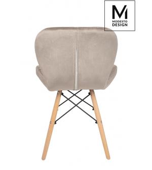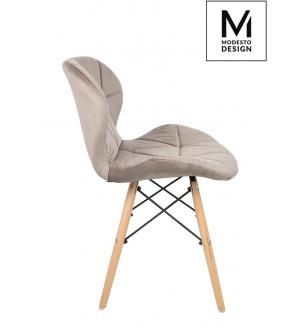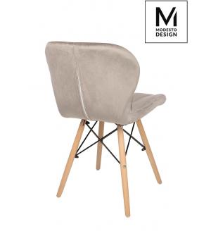 Krzesło KLIPP marki MODESTO DESIGN. Siedzisko i oparcie tapicerowane są tkaniną welurową w kolorze khaki. Nogi wykonane z drewna bukowego a łączenia ze stali lakierowanej na czarno.Szerokość siedziska 46 cm Głębokość siedziska 37 cm Wysokość oparcia 31 cm Szerokość oparcia 42 cm Rozstaw nóg (szerokość ) 39cm Rozstaw nóg (głębokość) 39 cm Wysokość nóg:...
