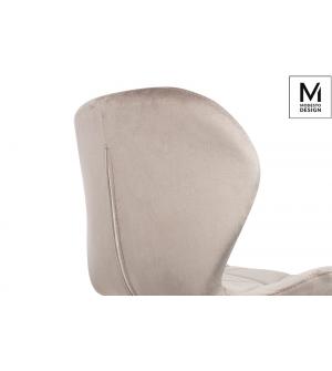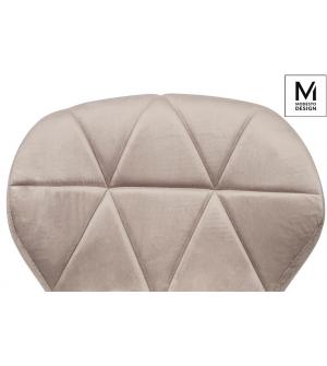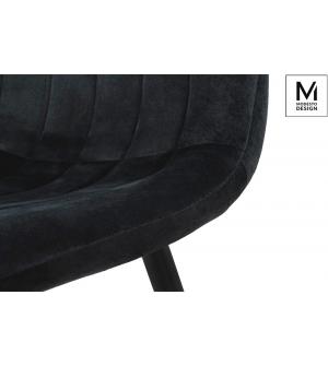 Krzesło Rango od marki MODESTO DESIGN. Eleganckie tapicerowane krzesło Rango w stylu lat 50-tych do salonu lub jadalni. Krzesło jest obite tkaniną welurową. Na oparciu dodane jest ozdobne pikowanie w formie biegnących pionowo szwów. Uzupełnieniem całości są nogi w kolorze czarnym, które nadają krzesłu wyjątkowej elegancji.Wysokość do krawędzi siedziska:...