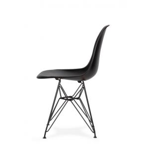 Krzesło DSR BLACK. Siedzisko i oparcie wykonane jest z tworzywa sztucznego. Nogi zrobione są ze stali lakierowananej proszkowo na kolor czarny matowy.Waga netto 1 szt.: 3.50 kg Sposób wysyłki: Paczka Produkt do samodzielnego montażu: Tak.