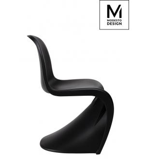 Krzesło HOVER marki MODESTO DESIGN. Hover jest w całości wykonany z tworzywa sztucznego (polipropylenu) w kolorze czarnym matowym.Waga netto 1 szt.: 5 kg Waga opakowania: 6 kg Sposób wysyłki: Paczka Produkt złożony: Tak Wymiary paczki: 92 cm x 84 cm x 51 cm