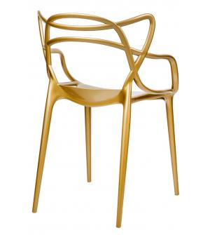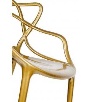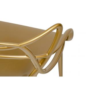 LUXO wykonane zostało w całości z tworzywa sztucznego ABS w kolorze złotym błyszczącym.Szerokość siedziska: 40 cm Głębokość siedziska: 45 cm Wysokość oparcia: 37 cm Szerokość oparcia: 52 cm Rozstaw nóg (szerokość): 47 cm Rozstaw nóg (głębokość) 58 cm Waga netto 1 szt.: 4 kg Waga opakowania: 5 kg Sposób wysyłki: Paczka Wymiary paczki: 73 cm x 57 cm x 93...
