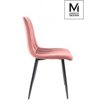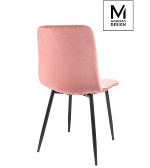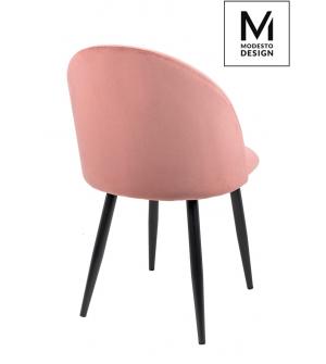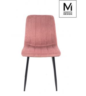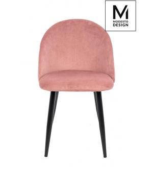 Krzesło NICOLE marki MODESTO DESIGN. Tapicerowane jest miękkim i przyjemnym w dotyku welurem w kolorze różowym. Stabilna podstawa została wykonana z metalu w kolorze czarnym matowym. Nicole to połączenie modnej tkaniny i klasycznej czerni.Waga netto 1 szt.: 6 kg. Waga z opakowaniem: 6,4 kg. Wymiary opakowania: 60 cm x 55 cm x 51 cm. Sposób wysyłki:...