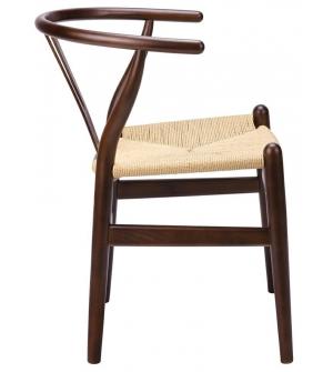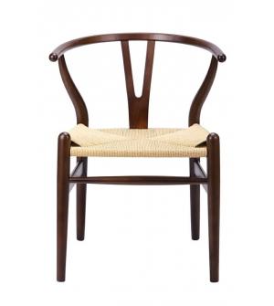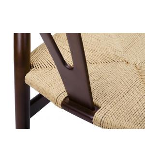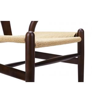 Krzesło Wishbone. Siedzisko wykonane z plecionki z naturalnych jasnych włókien. Stelaż z litego drewna bukowego w ciemnym brązowym kolorze.Szerokość siedziska 48 cm Głębokość siedziska 42 cm Wysokość do belki przód 32 cm Wysokość do belki tył 22 cm Wysokość do belek bocznych 25 cm Wysokość oparcia 34,5 cm Szerokość oparcia 51 cm Szerokość oparcia "Y"...