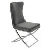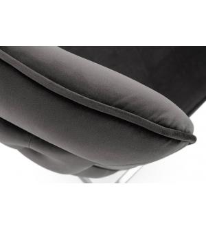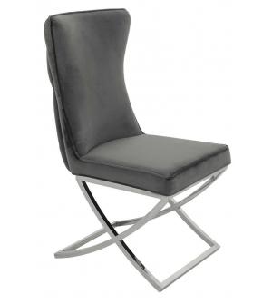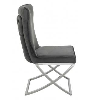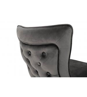 Krzesło IMPERIAL. Wyprofilowane krzesło tapicerowane jest miękkim i przyjemnym w dotyku welurem w kolorze ciemnym szarym. Solidna podstawa została wykonana ze stali polerowanej. Charakterystycznym akcentem jest zdobienie na tyle oparcia.Głębokość siedziska: 48 cm. Wysokość oparcia: 55 cm. Waga netto 1 szt.: 12 kg. Waga z opakowaniem: 12,5 kg. Sposób...