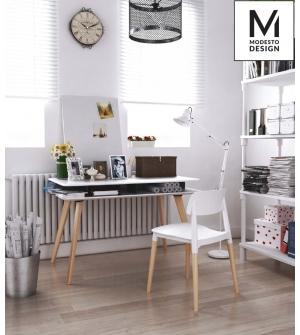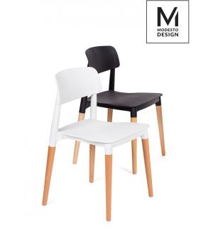 Krzesło ECCO marki MODESTO DESIGN. Siedzisko i oparcie wykonane zostało z tworzywa sztucznego w kolorze białym matowym. Nogi z drewna bukowego.Waga netto 1 szt.: 4 kg Waga opakowania: 5 kg Sposób wysyłki: Paczka Produkt do samodzielnego montażu: Tak Wymiar paczki: 75 cm x 54 cm x 44 cm