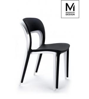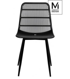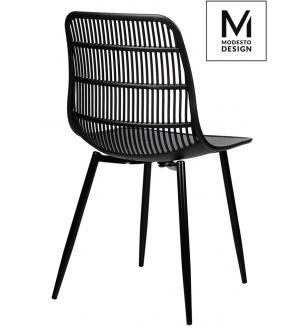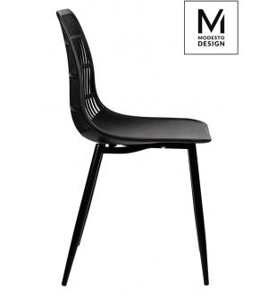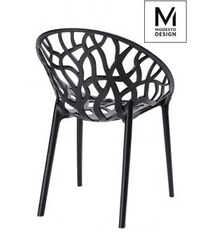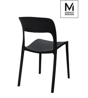 Krzesło Koral marki MODESTO DESIGN. Całość wykonana z polipropylenu w kolorze czarnym matowym. Krzesło sprawdzi się zarówno w nowoczesnym salonie, na tarasie lub balkonie. Krzesła Koral można sztaplować.Waga netto 1 szt.: 4 kg Waga opakowania: 4,5 kg Wymiary paczki: 61,5 cm x 57,5 cm x 89 cm Sposób wysyłki: Paczka Produkt złożony: Tak