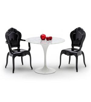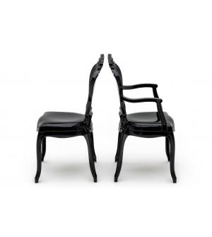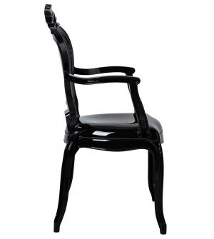 Krzesło czarne King Arm. Nowoczesna i szykowna forma w stylu Glamour. Krzesło w całości zostało wykonane z wytrzymałego tworzywa sztucznego (Poliwęglan), cechującego się dużą wytrzymałością na obciążenie (do 125 kg), odpornością na uderzenia i co najważniejsze lekkością (5,2 kg) Dzięki zastosowaniu przezroczystego materiału, krzesło optycznie nie zabiera...