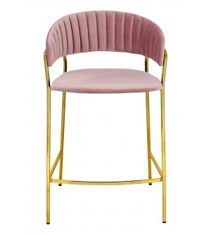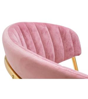 Krzesło barowe Margo w kolorze brudnego różu. Siedzisko i oparcie tapicerowane miękkim i przyjemnym w dotyku welurem. Mocna i stabilna konstrukcja wykonana została z metalu w kolorze złotym, błyszczącym. Doskonałe połączenie modnej tkaniny i złota. Pionowe przeszycia na oparciu dodają elegancji. Margo idealnie odnajdzie się we wnętrzach nowoczesnych i...