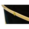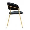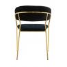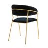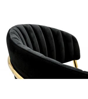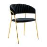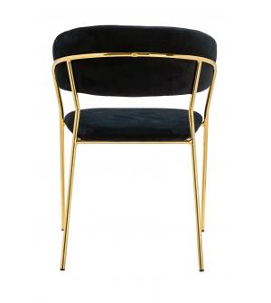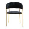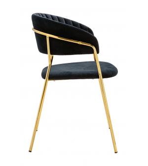 Krzesło Margo w kolorze czarnym. Siedzisko i oparcie tapicerowane miękkim i przyjemnym w dotyku welurem. Konstrukcja z metalu w kolorze złotym, błyszczącym. Margo to doskonałe połączenie modnej tkaniny ze złotem. Pionowe przeszycia na oparciu dodają elegancji. Krzesło idealnie pasujące do wnętrz nowoczesnych i klasycznych.Szerokość siedziska: 48 cm...