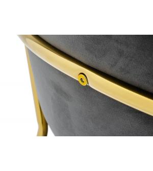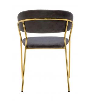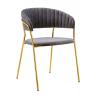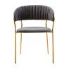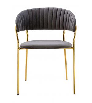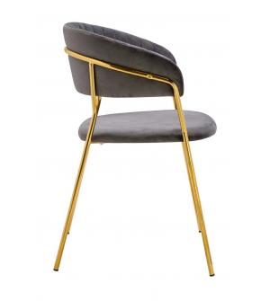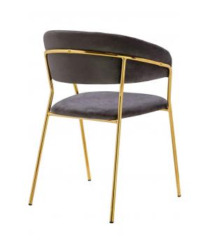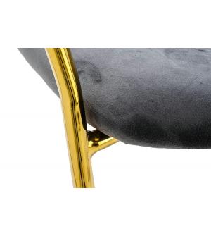 Krzesło Margo w kolorze ciemny szary. Siedzisko i oparcie tapicerowane miękkim i przyjemnym w dotyku welurem. Konstrukcja z metalu w kolorze złotym, błyszczącym. Margo to doskonałe połączenie modnej tkaniny ze złotem. Pionowe przeszycia na oparciu dodają elegancji. Krzesło idealnie pasujące do wnętrz nowoczesnych i klasycznych.Szerokość siedziska: 48...