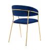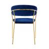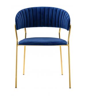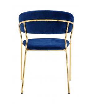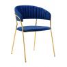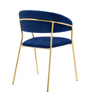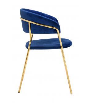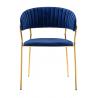 Krzesło Margo w kolorze ciemny niebieski. Siedzisko i oparcie tapicerowane miękkim i przyjemnym w dotyku welurem. Konstrukcja z metalu w kolorze złotym, błyszczącym. Margo to doskonałe połączenie modnej tkaniny ze złotem. Pionowe przeszycia na oparciu dodają elegancji. Krzesło idealnie pasujące do wnętrz nowoczesnych i klasycznych.Szerokość siedziska:...