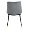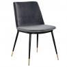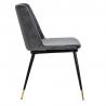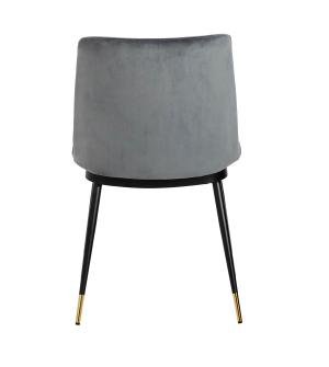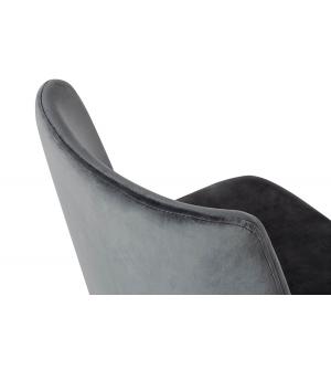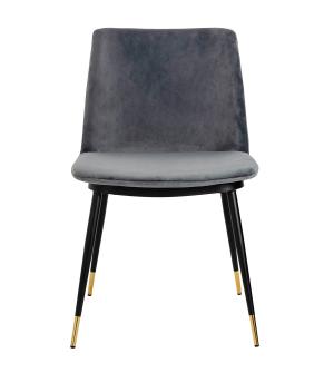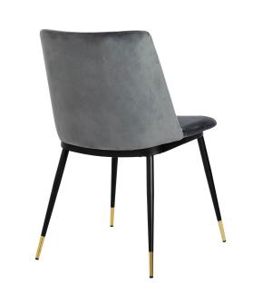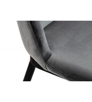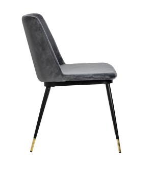 Krzesło Diego w kolorze ciemny szary. Siedzisko i oparcie tapicerowane miękkim i przyjemnym w dotyku welurem. Konstrukcja z metalu w kolorze czarnym z satynowym wykończeniem. Ciekawym elementem dekoracyjnym są złote zakończenia nóg. Krzesło doskonale odnajdzie się w jadalni, gabinecie oraz pokoju dziennym.Wysokość oparcia: 37,5 cm Głębokość siedziska;...