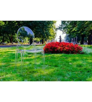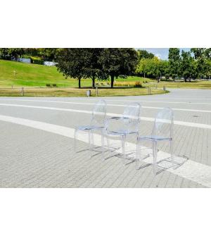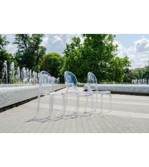 Krzesło Elizabeth w całości zostało wykonane z wysokiej jakości transparentnego poliwęglanu. Poliwęglan jest wysoce odpornym na zarysowania oraz promienie UV tworzywem sztucznym. Dzięki czemu, krzesło można użytkować wewnątrz jak i na zewnątrz budynku. Krzesło można sztaplować, ułatwia to przechowywanie.Szerokość siedziska: 42 cm Głębokość siedziska: 46...