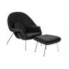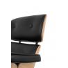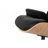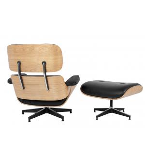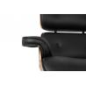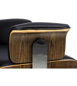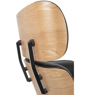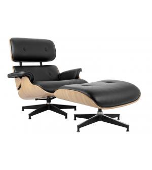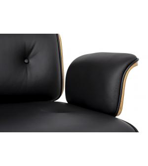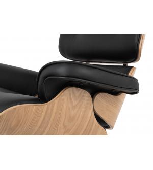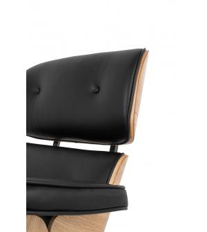 Fotel LOUNGE VA PREMIUM SZEROKI czarny z podnóżkiem z jesionowym drewnem. Cały fotel wraz z podnóżkiem tapicerowane są naturalną włoską skórą w kolorze czarnym. Zarówno korpus fotela jak i podnóżka został wykonany z giętego na ciepło drewna w kolorze orzechowym. Podstawy oraz elementy metalowe wykonane zostały ze stali, malowanej proszkowo na kolor czarny...