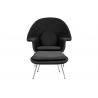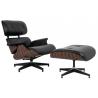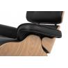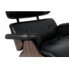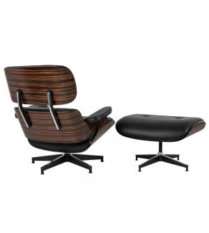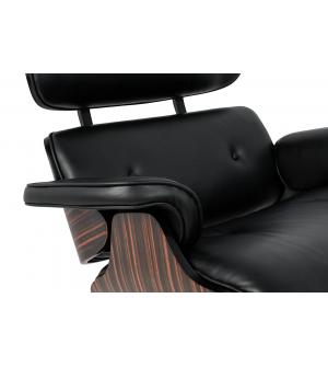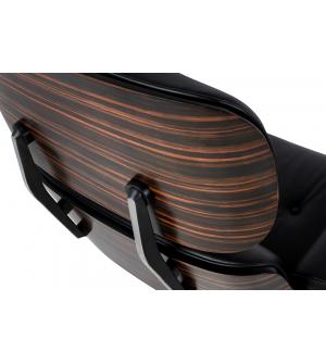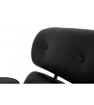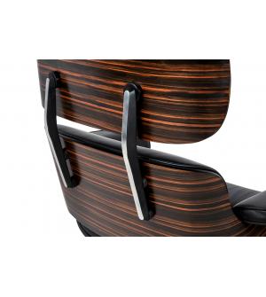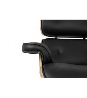 Fotel LOUNGE HM PREMIUM SZEROKI czarny z podnóżkiem z hebanowym drewnem. Cały fotel wraz z podnóżkiem tapicerowane są naturalną włoską skórą w kolorze czarnym. Zarówno korpus fotela jak i podnóżka został wykonany z giętej sklejki fornirowanej drewnem hebanowym Podstawy oraz elementy metalowe wykonane zostały ze stali, malowanej proszkowo na kolor czarny...