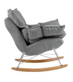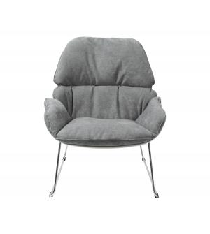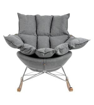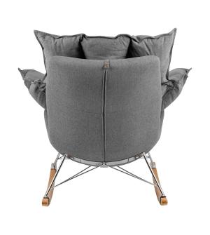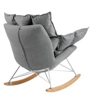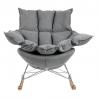 Fotel bujany SWING. Tapicerowany korpus wykonany jest z tworzywa sztucznego. Miękka poducha obszyta ciemnoszarą tkaniną (90% poliester, 10% nylon). Poduchę można w łatwy sposób odpiąć od korpusu. Stelaż ze stali polerowanej. Płozy wykonane zostały z jasnego drewna bukowego.Waga netto 1 szt.: 9 kg Waga opakowania: 14 kg Sposób wysyłki: Paczka Wymiary...